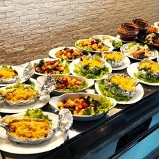 Были у вас месяца три назад, качество еды, обслуживание и персонал были намного лучше, сейчас зайдя в заведение обнаружили ужасную планировку невозможно спокойно взять поднос и подойти с ним, чтобы взвесили, поставить не куда места нет. Расплатиться нельзя спокойно карточкой, потому что дотянуться нормалтно нельзя из-за пирожков, которые стоят собирают пыль и потом продаются