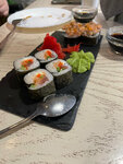 Первое впечатление о заведении не очень. Пришли с мамой покушать роллов. Это одно из немногих мест, куда можно заехать на инвалидном кресле. Долго ждали, когда официант подойдет принять заказ, подзывали пару раз, только на третий раз девушка подошла. Сделали заказ, я заказала Футомаки, в описании не было листа нори, принесли, мало того, что заварные в нори, так еще и малюсенькие. Сначала, я подумала, что нам принесли не наш заказ. Но официант, сказала, что все верно, просто меню поменялось и забыли исправить. Цены не дешевые на роллы, а порции очень маленькие. Ушли голодные. Но и уйти мы без ожидания не могли, после того как попросили рассчитать, ждали около 20 минут. В итоге сами поехали на кассу. Было желание уйти незаплатив, раз такое безразличие к посетителям.