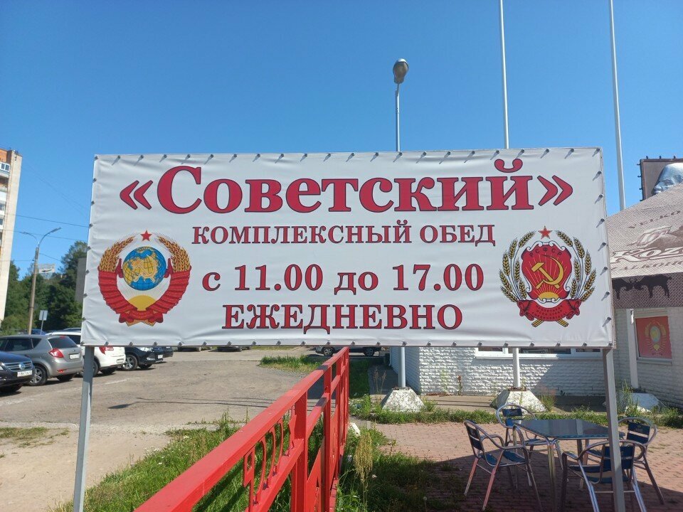 Гуляя по Сосновому бору заметили вывеску этого бара - кафе-бара из СССР. Естественно, решили зайти и прочувствовать ту самую атмосферу детства и юности. Прямо с порога нас встретил Владимир Ильич, ростом под 2,5 - 3 метра, как будто бы зовущий своим взглядом: «Заходите, товарищъ, не стесняйтесь, чувствуйте себя, как дома!». Каждая вещь, бросающаяся в глаза, напоминает о тех самых незабываемых годах, когда ни о чем, кроме школы и каникул не задумывался… В целом кафе не плохое: десяток столиков в зале, напитки на любой вкус, пицца, шаверма или комплексный «столовский» обед по достаточно компромиссным ценам. Посещением «кафе из далекого прошлого» остались полностью довольны! p.s. Девушке-продавцу - хорошего настроения и почаще улыбаться клиентам ))