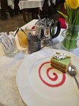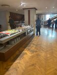 Цена и объём порции кусачий. Наверное, московский. Сегодня суббота, 20 часов. В кафе кругом шумные пьяные компании. Спокойно посидеть, отдохнуть не получилось. Еду ждали полчаса. Чтоб оплатить — 40 минут. Сидели и ждали, и слушали громких приезжих невминяемых отдыхающих. Просто ждали. Отмечу, что окрошка с заливкой мацони здесь очень вкусная. На завтрак большой выбор, но и народу много. Несколько дней были постоянные очереди на блины (их на глазах готовит один человек). Еда вкусная