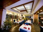 Симпатичное место (на первом этаже) с хорошим персоналом. ВСЁ! Еда - на троечку. Шашлык - не шашлык, а жареное мясо из духовки, наверное. Уха- не уха, а рыбный бульон с печёной картошкой и отдельно сваренной морковкой. Подгоревший крем-суп , и очень маленькие порции при ресторанной стоимости. Из всех заказанных за два дня блюд приличный был только салат "оливье" и пиво) Пожалели, что в город не пошли питаться. Утренний "шведский" стол - очень даже приличный.