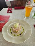 Заказав блюдо, которое называется бефстроганов с картофельным пюре и соленым огурчиком за 870 рублей, была мягко говоря в шоке прежде всего от того, что огурчиком назывались выложенные вдоль двух ложек пюре 5 тончайших слайсиков корнишонов! Вы серьезно???? В блюде за 870 рублей, на мой взгляд, вы могли бы положить и целый огурец! Выглядело мягко говоря, как издевательство. Ладно, бефстроганов - это у вас ровно четыре малюсеньких кусочка суховатого зажаренного мяса. Все рестораны экономят, тут все понятно. Муж, кстати, ушел вобще голодный. Но вы даже огурец пожалели, и такие несчастные слайсы огурцов лучше не позориться и не класть в блюдо совсем! Такое приемлемо только в столовой в блюде за 200 рублей! Не стали портить себе отдых и что-то выяснять, поэтому молча расплатились и ушли, но выводы сделали и в ваш ресторан больше приходить нам не хочется.
