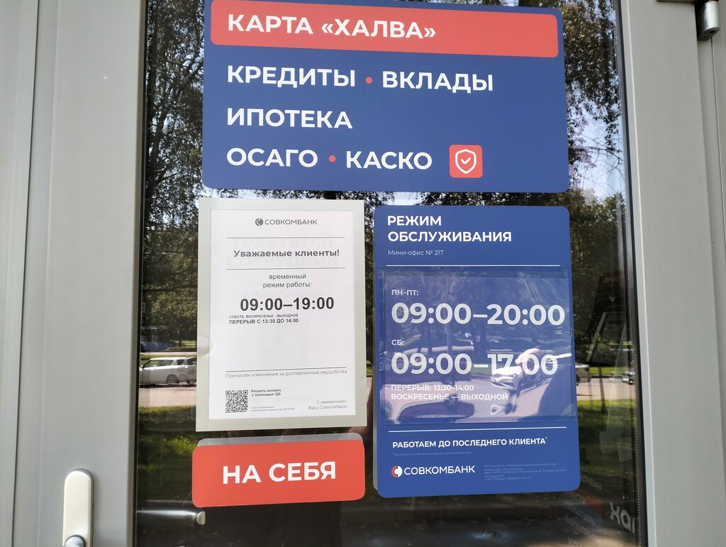 Зашли уточнить детали кредита, сотрудники курят, в помещении пахнет куревом так, что дышать невозможно, со мной была беременная подруга, ей стало плохо и мы ушли, пришлось ехать на Науки, противно общаться с сотрудниками, решили закрыть кредит, чтобы больше эту вонь нюхать. Обращаюсь к владельцам халвы и совкомбанка, если хотите денег, обслуживайте клиентов так, чтобы им приятно было у вас находиться.
