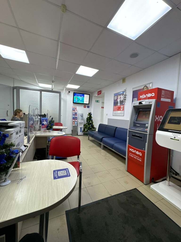 В офисе на калинина, 91 работает всегда один сотрудник, кроме, как оформлять кредиты и халву ничего не умеют. Либо не хотят, тк нет мотивации! Очередь 6 человек, даже не ускоряется, чтоб обслужить чуть быстрее и разгрузить очередь. 10 утра, в офисе грязно! Засохшая натоптанная грязь с прошлого дня! Тесно. Зашел 7 человек и стоит на крыльце) клиент обслуживается, а рядом все уши греют сидят. Какую ты сумму хочешь снять с накопительного счета… все всё слышат и знают! Зал ожидания должен быть чуть дальше, чтобы посторонние лица не знали персональных данных клиентов! душно, сотрудница открыла дверь входную, чтоб всех сдуло, наверно! Кондиционер можно еще включать) на улице +. Возможно он не работает! Скорей бы закрыть все счета, которые перешли с хкф и больше тут не появляться!