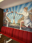 Посетили ресторан "Современники" на свадебном торжестве 30.08.2024. Очень приятное место. Оформление блюд на отлично. Оливье не только очень красивое, в хрустящем хлебном оформлении, но и безумно вкусное! Сырная тарелка, мясное ассорти, тарталетки с красной икрой выше всех похвал! "Цезарь" с креветками великолепен! Очень вкусные щучьи биточки с киноа и соусом прекрасны! В интерьере отдельное восхищение - это мозаики советской тематики, красивы невероятно! Обслуживание очень внимательное, аккуратное, вежливое. Однозначно, рекомендую посещение этого места и планирую посетить в следующий раз!