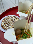Офигенное место! Очень вкусная еда, готовят достаточно быстро. Вафли воздушные, шикарные. Лапша тоже очень хорошая, вкусно и сытно. Сейчас еще появилась система накопления бонусов с каждого заказа, что радует еще сильнее! Очень удобно, хочется вернуться снова и снова.
