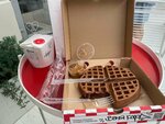 Ванильные и шоколадные, свежеиспеченные венские вафли с топпингами и сахарной пудрой . Соусы: соленая карамель, малина, смородина-клюква, сгущенное молоко, крем-чиз и кленовый сироп, карамель