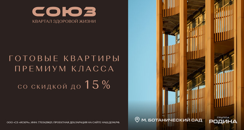 ЖК СОЮЗ рядом с ВДНХ. В марте действуют скидки на квартиру недели до 20%. Панорамное остекление, лаунж-зоны. Идеальное расположение по соотн...