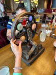 Заведение с концепцией дисконт, гуляли по набережной, увидели прикольные люстры и зашли. Заплатили на входе какую-то сумму(500-600 точно не помню) открыли меню и приятно удивились ценам и разнообразию позиций👌🏻 подача настоек в летающей тарелке порадовала👍🏻 заказывали много, приносили быстро, достаточно вкусно. Оформление зала в космическом стиле с налетом ссср тоже выглядит оригинально, спасибо, нам понравилось