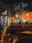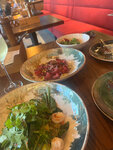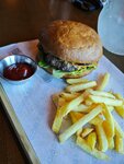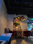 Интересное место, но... Платный вход обусловлен дешёвыми ценами, однако на мой взгляд, цены здесь соответствуют качеству блюд. Крайне долгое ожадание при посадке в половину столов и небольшие порции. Например, Том Ям подаётся в большой тарелке, только вот на всю эту тарелку есть всего одна креветка, одно кольцо кальмара, три маленьких мидии и два помидора черри. Бульон правда очень вкусный, но количество других составляющих это шутка какая-то, хотя цена у него средняя для средних ресторанов) Ну, ладно, идём дальше... Бургер из мраморной говядины — это абсолютное лукавство, ведь вместо мраморной говядины вы получите фарш из свинины, с лёгким очертанием говядины и свиным жирком. Запах и вкус как у котлет в столовой (не выдумываю, попробуйте сами), при этом очень сухая котлета. В бифштексе то же самое мясо и почему-то сочное, странно. Бургер не доел и половины, отвратительное блюдо, во ВКУСНО И ТОЧКА они более съедобные, да и дешевле. Лимонады здесь вкусные, их смело рекомендую, понравились очень. Касательно остальных блюд комментариев не будет, десерты тут вкусные, особенно авторский лимонный торт. В целом впечатление на 3.5/10, вернёмся через год и попробуем ещё раз, пока что не понравилось общее время ожидания и общая оценка всех блюд. Если вы любитель бургеров то вам пока что НЕ сюда)) Интерьер хороший, красиво. Официант извинялся за поваров, ему респект)