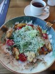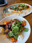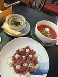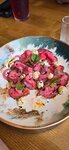 Само расположение отличное, но кухня🤦🏼‍♀️ Может конечно нам так повезло со сменой поваров… но это было очень не вкусно, возможно конечно такое «прочтение» этих салатов поваром это ок… но казалось бы как можно испортить греческую классику? А сходите в Союз28 узнаете) Салат с баклажанами и греческий были не вкусными в принципе, коктейли были просто отвратные ,десерт тирамису - тут конечно подвел и вкус и подача🙈 Глядя на принесённое «чудо» на тарелке сложилось ощущение будто кондитеру нужно было освободить тару из под десерта и он ложкой зачерпнул то что осталось на дне, положил в тарелку,чтобы потом за чашкой кофе самому его скушать), а офик не найдя нормального десерта - присыпал растворимым кофе, то что увидел похожим на нужный десерт, бросил сверху щепотку цедры и быстрее в зал отдать позицию… Что понравилось: диджей и обстановка. В целом две звезды за них же. Больше туда точно не пойдем. До цеха союзу ой как далеко😉
