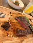 Персонал вежливый, у входа встретил хостес после чего официант проводил к столику, не предупредив, что кухня закрывается менее чем через полчаса. Меню однообразно. Концепция заведения в том что, еда свободная от цен, честная кухня; чего по факту на некоторые блюда не было замечено. Заказали стейк рибай прожарки medium well, по факту вы можете сами увидеть степень прожарки… 1/3 стейка была хрящом Картофель мини не плохой, но овощи на гриле не понравилось, Как будто их измазали углями, на зубах чувствовался «песок» Филе трески с оливками, моему молодому человеку не понравился, по вкусу напоминало «столовскую треску» ( извините за прямолинейность) Компот вкусный насыщенный 5+ Соусы интересные, как по названию так и в интерпретации, хочется попробовать каждый Цитрусовый Лимонад на вкус отвратительный, честно даже не подобрать слов чтобы описать( Атмосфера ресторана непринуждённая, современный интерьер. Смущают перегоревшие лампочки, и комары окружавшие наш стол ( на видео видно, что мы сидим внутри). Приду ли я повторно в этот ресторан ? Нет. Посоветовала бы я его своим знакомым? Нет.