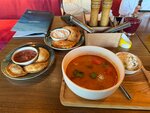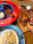 Решили семьёй пообедать в воскресенье в этом заведении. На входе нас встретили, оплатили за вход по 150 руб,ребенку 5 лет пропустили бесплатно. Нас усадили за стол. Меню ждали минут 10, после ждали ещё минут 15 что бы сделать заказ. Время ожидания заказ 20-35 минут. Еда на 4, очень разочаровала рулька 70% это жир. Нет хрустящей корочки. Надеюсь это просто единожды неудачно приготовленная рулька. Цезарь, гаспачо огонь. Десерты вкусные