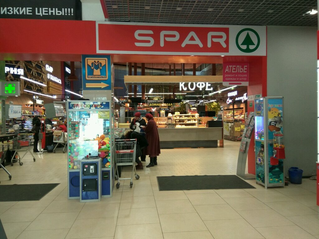 Мне нравится именно этот магазин из сети Спар. Акции всегда соблюдаются, ценники на всё есть, просрочки не встречала, хотя всегда проверяю срок годности. Беру там овощи, фрукты, молочку, мясо, хлеб, ну практически всё, кроме готовой еды. Меня всё устраивает, очереди на кассе очень редко, удобно упаковываться, просторный современный магазин.