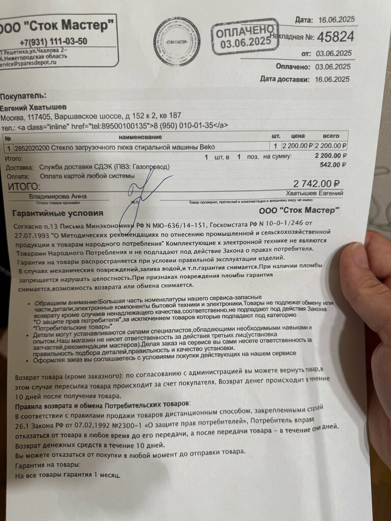 Советую магазин! Заказывал стекло люка для своей стиралки beko Пришло очень бережно запакованное! На фото причина покупки и следствие замены. Из минусов (почему снял 1 звезду): Долго ждал запчасть, заказывал 3.06.25, получил заказ 16.06.25 Отдельное спс сотрудникам магазина, звоните только в будние, рабочие дни, в остальные трубку брать не будут (это нормально) Общаются открыто, идут навстречу в решении проблем.