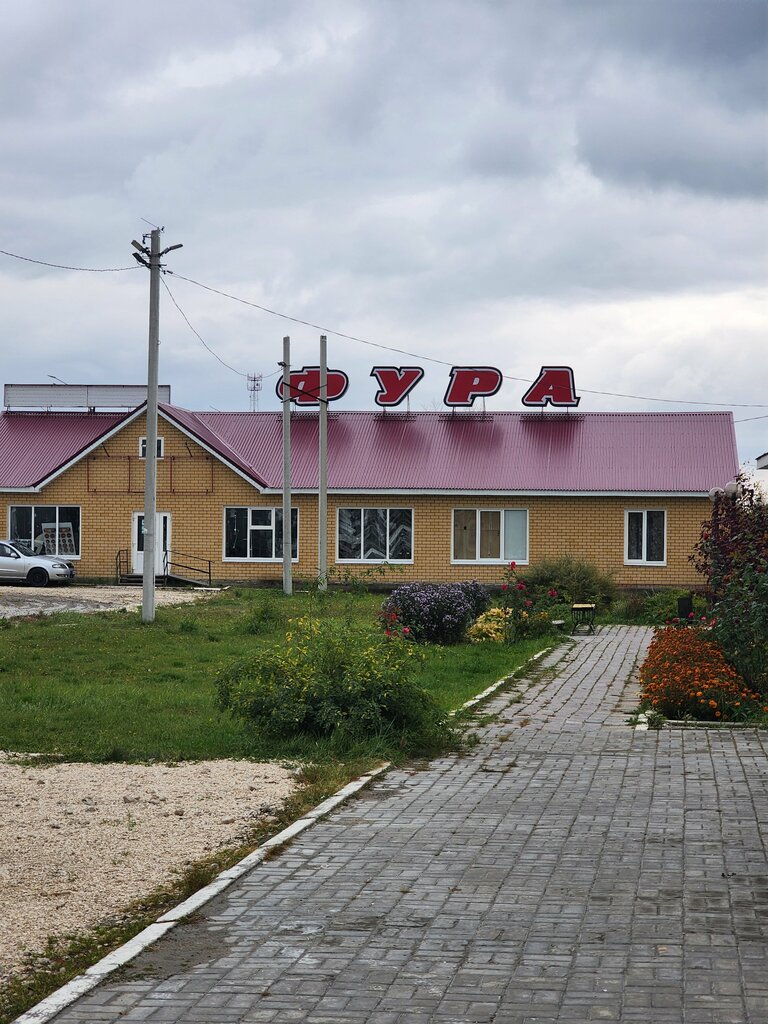 Две звезды это только за автомагазин "Фура"! Магазин понравился: большой выбор запчастей и товаров. Есть ремонт тентов, но было закрыто... В кафе (столовую) ходить не советую: из того что я взял компот уже был с нотками брожения, пюре с явным кислым вкусом. Но было и ещё, что произвело на меня впечатление: за витриной с с предлагаемыми блюдами расхаживала одна из работниц кухни, тётка в габаритах. В какой-то момент я обратил внимание, что она толи специальной вилкой, толи щипцами (которыми они раскладываютпорции) взяла из лотка на этой витрине кусок жареной рыбы, поднесла его к своему лицу, принюхалась к этому куску рыбы, после чего положила обратно! Это конечно меня "немного" шокировало🤢.