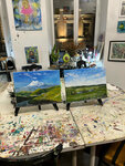 Посетили мастер-класс по живописи (арт-свидание <3) Это было здорово) Мы выбрали пейзажи акрилом. За 3 часа удалось написать. Преподаватель Лиза нас подбадривала в процессе и помогала писать картину, советуя какой тон взять и как выразить на свету зелень. Студия очень уютная. По стенам везде вдохновляющие работы, даже глаза разбегаются. Играла мелодичная музыка. Очень классная атмосфера, располагающая к творчеству. Главное все продумано до мелочей: мольберт, поставка под телефон, палитры. Спасибо за отлично проведенное время, за хорошее настроение и удачные картины. Нам с мужем понравилось ☺️