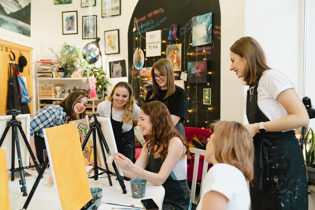 очень классное местечко! расположение очень удобное, сама студия уютная. посетили мастер класс арт-свидание для пары, рисовали одну общую картину акрилом 🎨👩🏻‍🎨👨🏻‍🎨 нам невероятно повезло в тот вечер- с нами была очень милая и отзывчивая художник Юля! ☀️💘 она помогла нам определиться с эскизом, всегда была рядом, помогала, подсказывала и хвалила! а ещё сделала нам потрясающие живые фотографии)) в следующий раз хотели бы тоже попасть именно к ней - Юля профессионал своего дела, а ещё очень приятный и добрый человек! по итогу у нас получился шедевр, чему мы безмерно рады! мы остались под огромным впечатлением! спасибо за такую возможность тепло и с интересом погрузиться в мир творчества и отлично провести вечер! вернёмся к вам снова 🥰