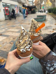 It's very tasty! Sweet lovers should try it at least once. We ordered a mini size, there were no ready-made small ones, but they baked fresh ones for us in 7 minutes. The ice cream on top is very tasty, you can choose the filling inside: fruit/ apple strudel / cherry jam, and vanilla cream / chocolate paste. They communicate easily in English.