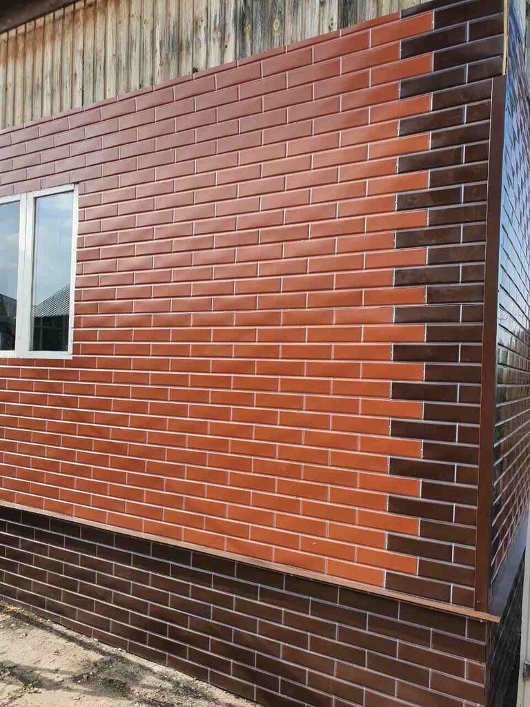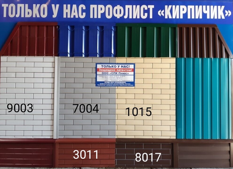 Короткие сроки изготовления, необычный дизайн профнастила. Вид кирпичной кладки, если купить с прокрашенным швом, то смотрится как настоящий кирпич.