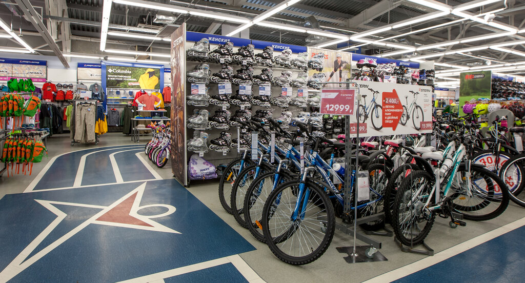 Огромный магазин спортивных товаров и инвентаря, одежды. Являемся всей семьей постоянными покупателями именно этого магазина. Отзывчивые консультанты, мега выбор товаров, удобное расположение самой торговой точки. Единственное, хочется, чтобы цены не росли так быстро.