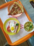 Пицца очень понравилась. Горячая, прям из печи. Время ожидания коротали с кофе - что тоже не плохой. Единожды обедали ,в этом же помещении,в столовой - полноценный обед на двоих - есть конечно замечания ( но это скорее дело личного вкуса)