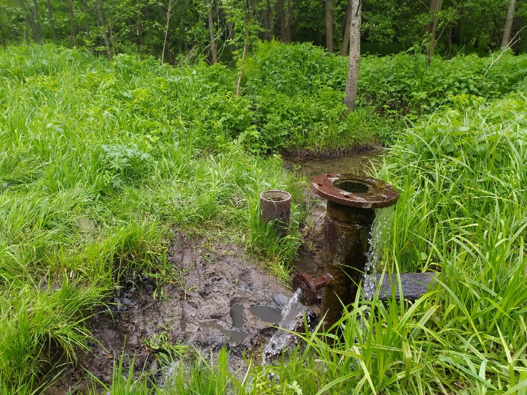 Артезианский прокол. Вода отличная. Есть подъезд, но с реки идти далеко, летом слепни и комары одолевают