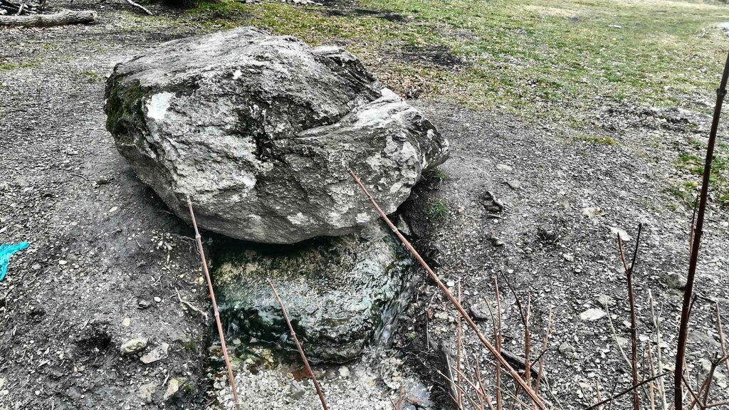 Колодец сверху накрыт большим камнем, изнутри доносится шум воды, но попить не получится, ручей из него не вытекает. Дикий лес прекрасен, что аж страшно, если идёшь по тропе один.