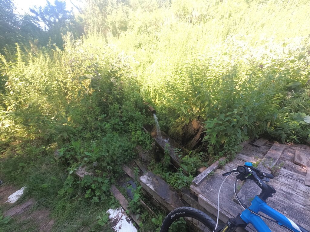 круглый год и зимой и летом течёт ледяная вода. не замерзает даже в лютую стружку. место, конечно, не облагорожено, тем не менее умыться и выпить глоток воды всегда приятно))