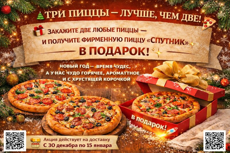 Очень классное место! Часто заходим в кафе-пиццерию «Спутник» — всегда стабильно вкусно. Пиццу приносят горячую, начинки не жалеют, тесто мягкое и ароматное. Атмосфера уютная, можно спокойно посидеть, а можно взять с собой или заказать доставку. Персонал приветливый, всё быстро и без лишней суеты. Однозначно одно из любимых мест