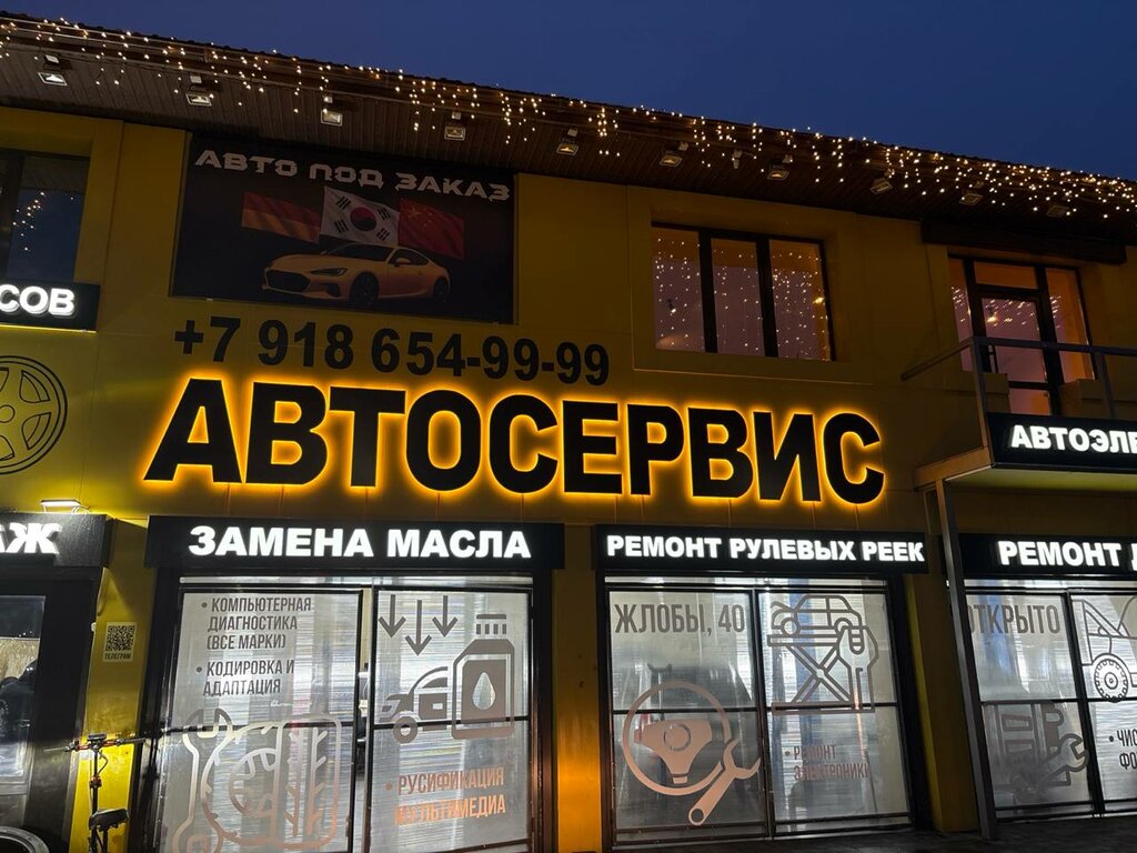 Repair sevices:a/c recharging and repair, exhaust system repair, repair of brake system, plastic bumper repairs, engine repairs, full car sevice, installation of parking sensors, tinting, running gear repair, starter motor repairs, computer car diagnostics, car electrician repair, steering racks repairs, nozzle cleaning, fuel injector cleaning, car alarm, gearbox repair, generator repairs, repair injectors, auto parts repair, cooling system repair, repair of power steering, de-coking, engine endoscopy, replacing of timing belt, automotive electronics repair, removal of catalysts, oil changes