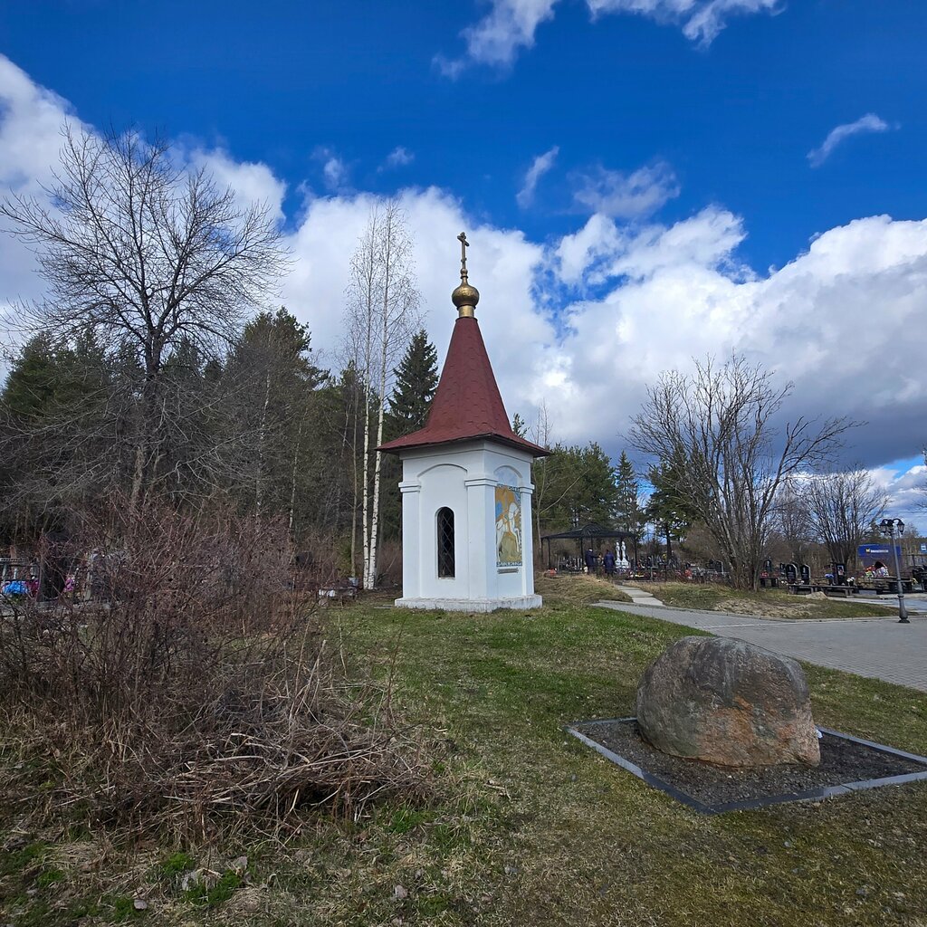 Маленькая однокупольная кладбищенская часовенка посвященная святому великомученнику Георгию Победоносцу, построенная на пожертвования в 2005 году. Стоит при входе на кладбище "Пески" рядом с мемориалом жителям Карелии, погибшим в концентрационных лагерях (уточню, в финских концентрационных лагерях).