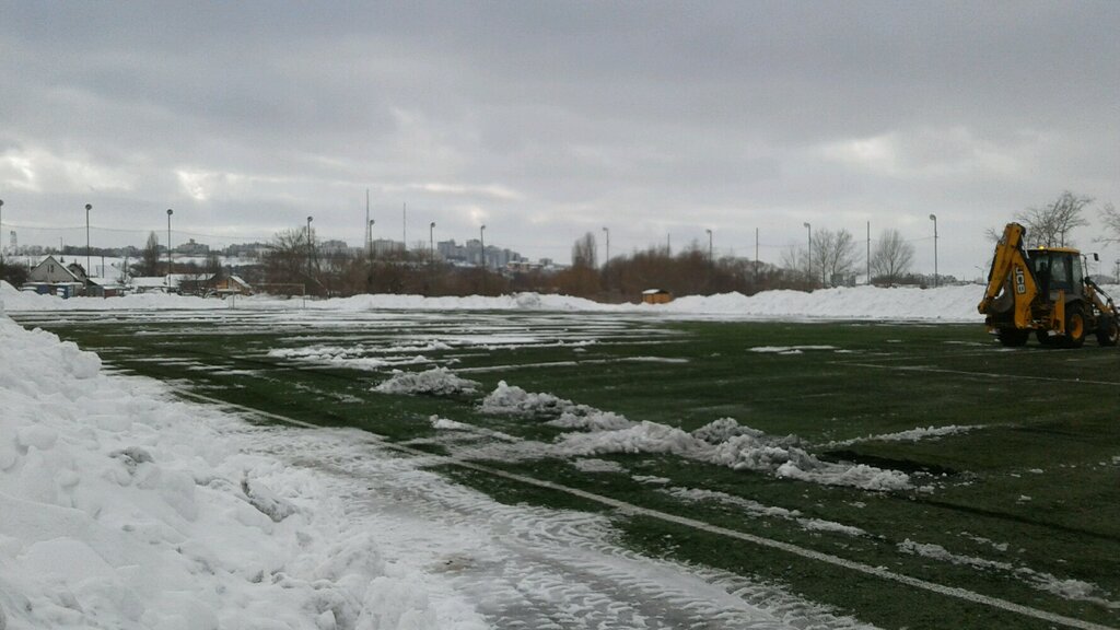 Покрытие уже местами с ямками сетка за воротами порвана Мяч улетает далеко за пределы так же боковые сетки тоже не выполняют свою функцию так как не прикреплены к тросу у земли . Рекламные щиты плохо закреплены ветер их постоянно водительское так же с братиной стороны торчащие гвозди !Беговые дорожки асфальтированные , что вредно для здоровья (суставов)при пробежках