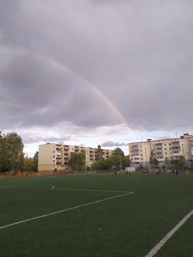 A good school stadium that is open to EVERYONE! You can run along the paths, breathing in the pleasant smell of coniferous trees, sit on the podium on plastic seats with a book or gadget, play football with your loved ones. And it's all OPEN AND FREE!!!!! In Minsk, now with the total occupation of the territories of all schools, such joy has been preserved in few places (((((