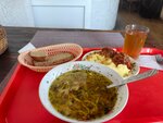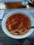 Очень вкусные и большие порции, но посуда вся разная и липкая, со сколами, приборы тоже. Ну а о плесени в коридоре и грязных деревянных стульях-тронах д говорить страшно. Еда вкусная,интерьер жуть!