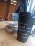 Милое чудесное место, отличный кофе и чудесный персонал. И поднимает настроение мотивирующая надпись на стаканчике.