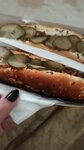Сухие булки, сухие невкусные сосиски, соусная составляющая вся внизу, все сочится и капает, в общем кардинально не советую.