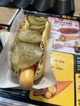 Зашёл быстренько хотдог взять. Хотел французский с трипл чиз, кетчупом и горчицей. В итоге по быстрому не получилось, дама кинула сосиску греть и исчезла. Вернулась минут через 5 с расходниками, сосиска уже горела. Без тени смущения мне вручили горелый хот дог с вообще всеми соусами из ассортимента. Ва бене!