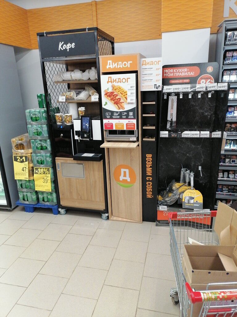 Мало место. Не всегда есть нужные сосиски. Персонал хороший