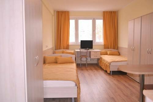 Гостиница или жилой комплекс. Брали трехместный номер - достаточно прилично выглядит. Места много, есть кухонная зона с холодильничком, микроволновкой, электрочайником. Есть раковина и шкафчики для посуды. В номере небольшой жк телевизор. Туалет, конечно, тесноват, но там и не заниматься спортом, хотя душ - просто поддон и шторка. На пару ночей сойдет. Звукоизоляция так себе. Слышно происходящее в других номерах. Стоянка - по кругу здания, охраны нет. Есть достаточно приличная и вкусная столовая, за обед на троих 1е, 2е и чай-кофе вышло чуть больше 1000 рублей. Доступ в номера, к лифту и выходам на лестницы через чип-ключ. Расположен удобно, рядом достаточно продуктовых магазинов и торговых центров.
