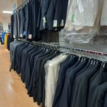 Большой выбор брюк и пиджаков, есть рост до 182 точно (попробуй такой найди...) легко можно подобрать и нужный рост, и оптимальный фасон посадки с учетом разных фигур. С синим и чёрным цветами проблем нет, ткани разных оттенков и состава на выбор. С серым цветом выбор очень скромный. Нравится, что брюки продаются не подшитыми, с паутинкой в комплекте, чтобы идеально и без лишних хлопот подогнать рост. По цене, конечно, если сравнивать с китайскими синтетическими брюками, эти дороже. Но ткань более натуральная, либо шерсть, либо вискоза. Впечатляет, что прям километры вешалок с брюками. Продавцы помогут из этого выудить нужные на выбор.