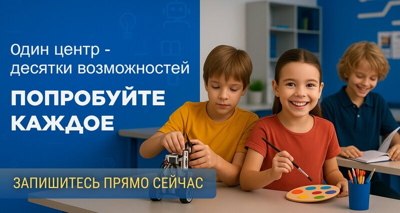 Classes for children:arts and crafts, inventiveness, computers and programming, foreign language, modeling, robotics, mathematics, chess, speed reading, logarithmics, financial literacy, calligraphy and literate, sculpting, reading, English language, speech development