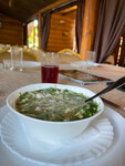 Хотели «аутентичности». Нашли это место. Атмосферно, все в дереве. Ароматы потрясающие. Ресторан ориентирован на банкеты. Хотели заказать шашлык, ожидание 40 минут смутило и баранины не было. Нас ожидала долгая дорога. Изменили заказ на окрошку- вкусная. Но, как мне кажется, к ней как и к борщу идеально подходит чёрный хлеб, в ресторане только лепешки. Второе ждать около 40 минут тоже. Мы взяли салат , я цезарь с курицей. Вместо листьев салата была капуста, обильно залиты мазчиком:) курица «полежавшая» серого цвета, мужчина взял салат с цитрусовой заправкой, острый очень. О чем не был предупрежден. Так же хотели взять хачапури , которого тоже не оказалось. Цены дешёвые. Сотрудник, Который помогал нам с выбором очень приятный и очень жали, что ему приходилось всегда извиняться. Возможно, для банкета место отличное, но для обеда , ужина для двоих совсем не подходит.