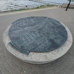 Отличная идея.. на берегу на небольшой площади названной в честь святого преподобного Макария Калязинского (Матвея Васильевича Кожина), в виду торчащей из воды затопленной колокольни, установлен памятник (назовем так, арт-объект, все же, не так уважительно) в виде немаленького такого металлического диска на каменном основании. На диске том, нанесен наглядный план части Калязина в 19- начале 20 века, до его частичного затопления. Почти половина исторического центра ныне скрыта под водами Угличского водохранилища. По правому берегу была затоплена полоса примерно в 200 метров шириной, а по левому почти вся Монастырская слобода. Объемное изображение на металлической поверхности можно детально поразглядывать, изучить макет местности с указанием улиц в Макарьевской, Никольской слободах и Свистушенской части города. Диск выполнен в 2021 году тверским металлургическим центром "Тверская бронза" по проекту архитектурной студией «Артис» из Твери.⁣ Установлен в рамках проекта по благоустройству набережной реки Волга и спуску к колокольне Николаевского собора, который одержал победу на Всероссийском конкурсе лучших проектов благоустройства в 2020 году. Очень круто придумано, очень наглядно, красиво и интересно.