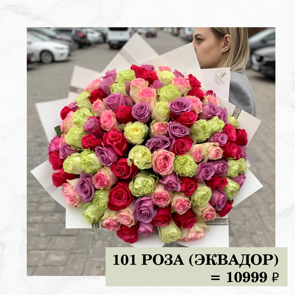 Монобукет из 101 розы: эффектный монобукет — стильный подарочный букет в красной, белой гамме или цветовой палитре ассорти, собранный из 101 розы одного сорта. Без дополнительных упаковок, под атласную ленту. Монобукет классический вариант, который