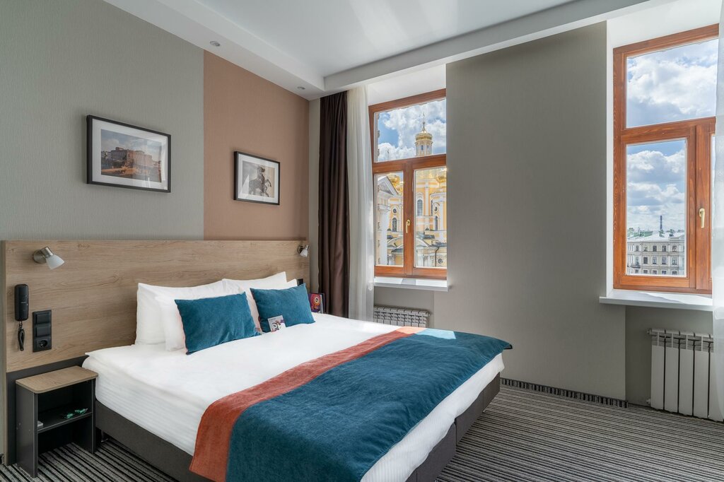 Откройте для себя комфорт в центре Петербурга! Светлый номер с яркими акцентами, стильной мебелью, кондиционером, LCD-телевизором, холодильником и чайной станцией. В ванной — халаты, полотенца и косметика. Идеально для 1-2 гостей.