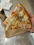 Отличная пицца: хорошее добротное тесто не батон и не сухая корочка, идеальная середина, ингредиенты свежие! Что было прям подарком в привокзальном кафе. Ребята бдят качество, спасибо огромное, если вы здесь поедите то будете сыты и здоровы) кайф) даже по фотке видно: начинки много и она свежак. Гостей много приходит, ничего не задерживается. Но кофе капучино вода водой, прям минус, надо с машинкой что-то думать, настраивать) не стала пить в общем вылила в раковину, но еда респект, обслуживание супер, добродушие и порядок. Сначала съела один кусок на пробу, заказала второй. Молодцы