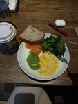 Неплохо, но не вау. Тартин передержали, и если с боковых сторонах для такого вида хлеба это нормально, то срезе ты ожидаешь легкую золотистость, а не еле разрезаемую подошву. Лосось был теплым. Каша и кофе были вкусными.