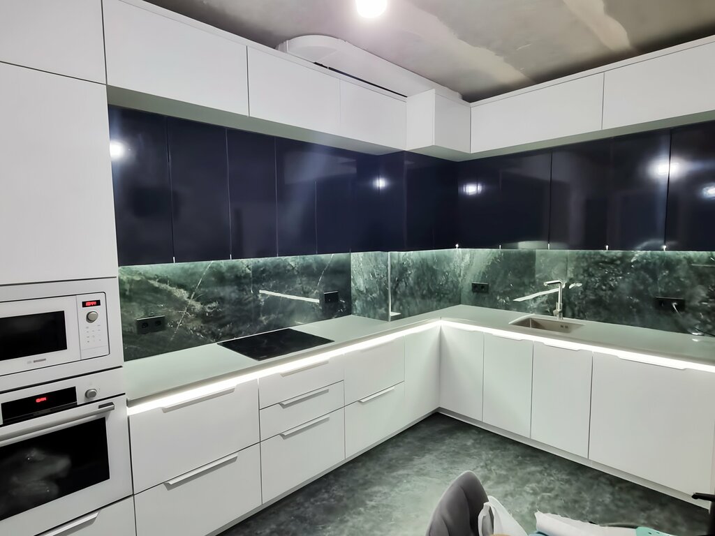 Синяя кухня с подсветкой