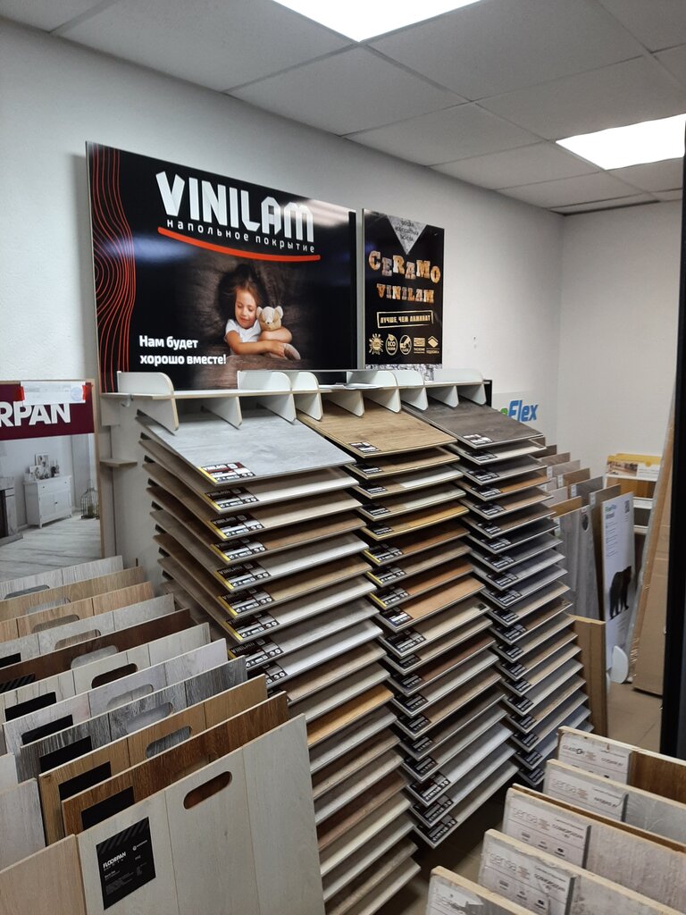 Много образцов в зале, помещение светлое, выбор ламината огромный, в Пушкине ничего подобного не найти. Компетентный менеджер. Теперь не нужно ехать в Питер.